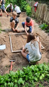 Van uitmeten tot nadenken tot plan tot afwerking. Onze oudste leefgroep ging tijdens een buitenles aan de slag.