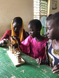 Na 3 jaar zijn we er nog eens geraakt… Valiezen gevuld met materiaal, hoofden vol goesting!! Voor het eerst waren we hier terwijl er les was in Leefschool Klavertje 4. De weekopening met “levé du drapeau” werd live gevolgd in Nevele via videomeet. De ganse dag door werd er gevideobeld en vele vragen konden instant worden beantwoord. Top om al die verwonderde gezichtjes te zien. Senegal was ineens wat dichterbij Nevele. We konden ook tijd maken om samen het ineensteken en schilderen van de telramen. Het materiaal brachten we mee van een papa van Klavertje 4 die hiervoor recupmateriaal gebruikte en alles perfect verzaagd had. Confronterend hoe inventief we moesten zijn om wat verf te verdelen en de schijfjes te laten drogen, maar ooooooohhhh zo mooi en leerrijk om te zien hoe er voor alles een oplossing is. De restjes verf werden gebruikt om lege waterflessen te kleuren om zo het sportterrein af te baken.