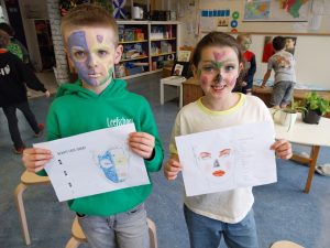 We trokken naar GO! MUDA kunsthumaniora om acteer, dans en zangles te volgen. We verwelkomenden actrice Greet Verstraete en acteur Jan Schepens. Met hun tonnen ervaring beantwoordden ze heel wat van onze vragen en gaven ons tips en oefeningen mee. Onze creativiteit borrelden langs alle kanten. Op weg naar onze eigen mini-musical ontworpen we personages en grimmerden ons schminkmaatje. Huistaken werden zanglessen en tekstdialoogjes memoriseren. Binnenkort is het voor echt en staan we zelf op het podium van onze eigen *mini musical*