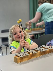 De mama’s van onze jongste spruiten werden dit jaar in de bloemtjes gezet op een muzikale manier. Om te oefenen trokken ze naar de muziekacademie in Aalter, waar ze op de grote trommels, drums en xylofoons mochten slaan. Onder pianobegeleiding zongen ze uit volle borst hun trommellied. Wat een plezier !