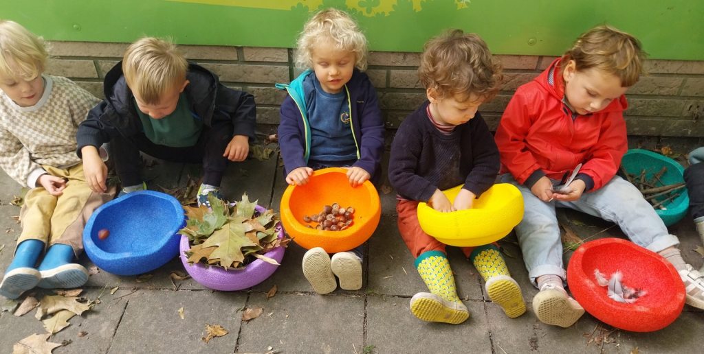 We hoeven maar onze klas uit te stappen en wat in ons schooldomein rond te stappen en de nieuwsgierige oogjes vinden we meer dan we verwachten. De ikkertjes zochten en sorteerden tot ze een heuse winkel hadden. De eikels, de blaadjes, de veertjes, de takjes, de kastanjes, … het kreeg allemaal een naam om zo een stukje van de wereld beter te leren kennen.