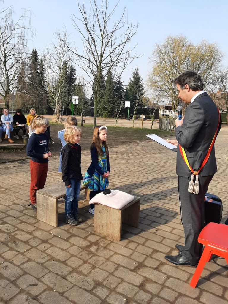 Burgemeester Jan Vermeulen ging op onze uitnodiging in en de kinderen van het Vogelnest staken heel wat op. Leuk en leerrijk tegelijk !