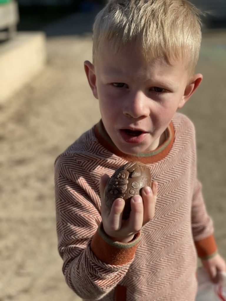 Maar omringd door zoveel medewerking en flexibiliteit, schoot ook de paashaas een weekje vroeger in gang en verstopten de meer dan 200 eitjes tussen onze struiken, in de bomen, achter klimtoestellen, op het blotevoetenpad, … maar we vonden ze allemaal.