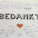 Ze kreeg deze week een hele pakket terug : een bedankingsbrief ondertekend door artsen en verplegers, tekeningen gemaakt door ziekenhuiskindjes, een boekje met leuke opdrachten, ….
