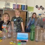 Van het leven in de oceanen, de vissen en koraalriffen, over de namen en liggingen op onze wereldbol, het drijven en zinken principe, de oceaanlagen, de ontdekkingsreizigers die vol avontuur vertrokken, tot filosoferen over de oceaan. Mee geïnspireerd door het weer van de afgelopen dagen, was er ook een doe-stand waar uitgelegd werd hoe je een regenmeter maakt. Veel heb je niet nodig en uiteindelijk vloeit al het water naar de zee. Een oceaan die kan oneindig gevuld worden tot het land verdwijnt …